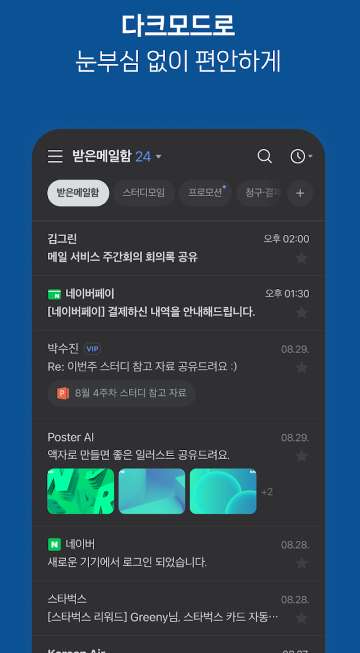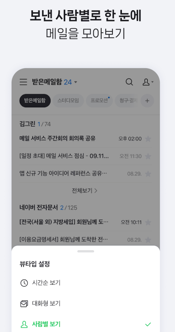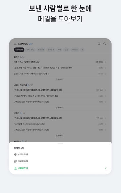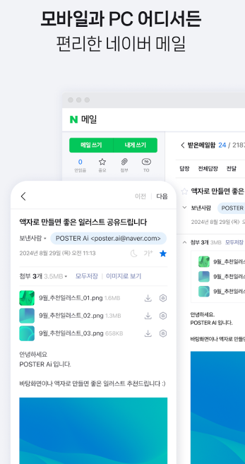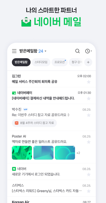 네이버 메일 앱으로 스마트한 메일 관리! 원하는 메일은 쉽게 골라서 보고, 중요한 메일은 놓치지 마세요.