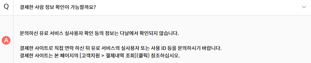 - 불명확한 결제 내역이 있을 경우, 문의하기 기능으로 고객센터 접수 가능