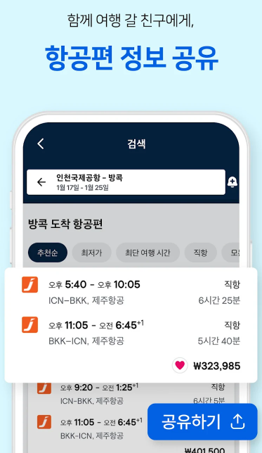 - 항공사, 출발시간 필터: 자주 이용하는 시간대와 항공사 미리 설정