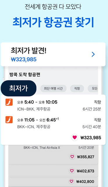 - 가격 알림 설정: 원하는 노선 가격이 떨어지면 바로 알림 제공