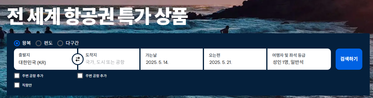 - 예: 아고다, 익스피디아, 트립닷컴, 항공사 공식 사이트 등