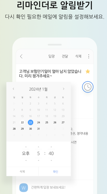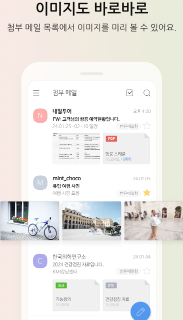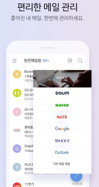 - Daum, Gmail, iCloud, IMAP 등 모든 메일 연동 가능