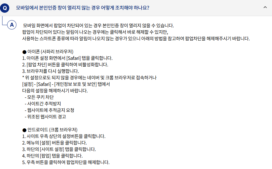 - '동의하기' 버튼 선택 후 본인인증