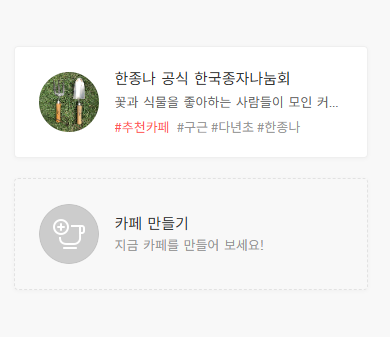 - 상단 메뉴 중 내카페를 선택하면 내가 가입한 모든 카페 리스트 확인 가능