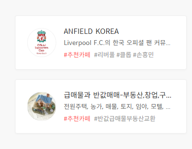 - 로그인 후 자동으로 다음 카페와 연동됨