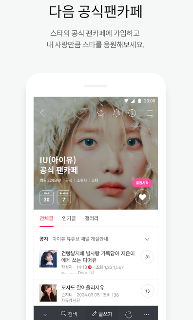 - 구글 플레이스토어나 앱스토어에서 다음카페 또는 Daum Cafe검색