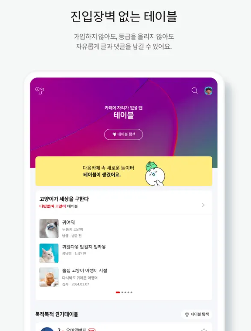 다양한 연령층이 함께 활동하며 서로의 생각을 이해하고 협력하는 장으로서, 다음 카페는 디지털 시대의 공공장소 역할을 하고 있습니다.