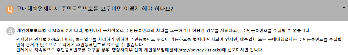 - 쇼핑몰 결제 단계에서 통관정보 입력란 작성