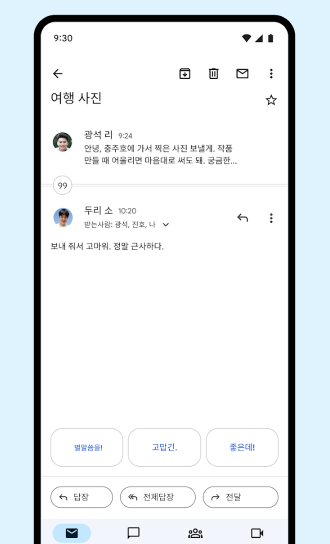 또한 자주 사용하는 표현은 Gmail이 기억해 주기 때문에, 개인 맞춤형 추천 문장으로 점점 더 정교해지는 AI 기반 답장 기능도 활용할 수 있습니다.