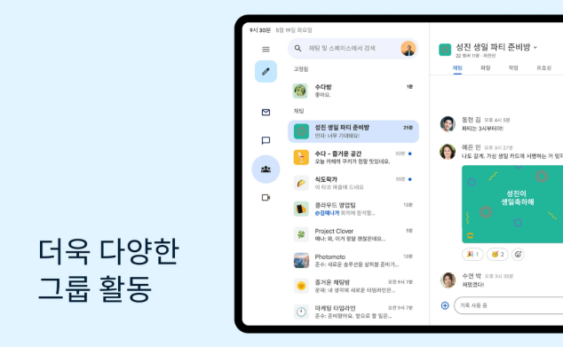 - 드라이브, 캘린더, Meet, Docs 등과 자동 연동되어 생산성 극대화