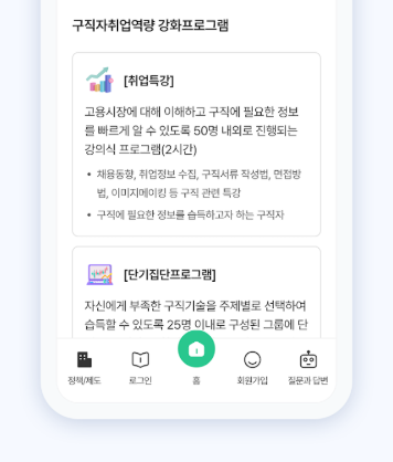 → 컴퓨터 기초, 의사소통, 교통안전보조 등 교육 수료 후 채용이 빠름