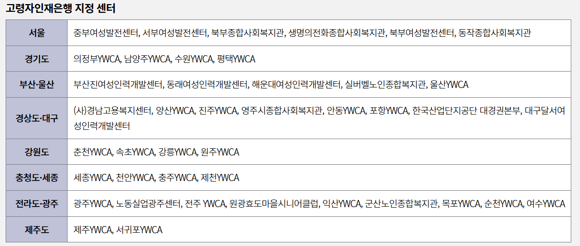 - 가까운 고용센터나 지역 시니어 일자리 수행기관에 전화 문의