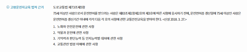 - 이유: 사고 예방 목적 + 면허 갱신 지원 혜택