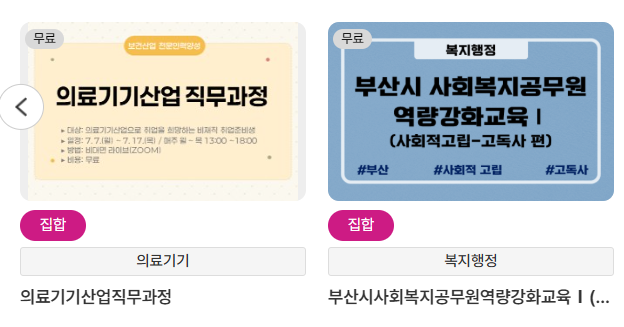 - 개인정보보호교육, 감염병 예방교육, 성희롱 예방, 장애인 인식개선 등 다양
