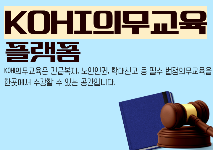 - https://edu.kohi.or.kr 접속 후 사이버교육 > 법정의무교육 메뉴에서 수강 가능