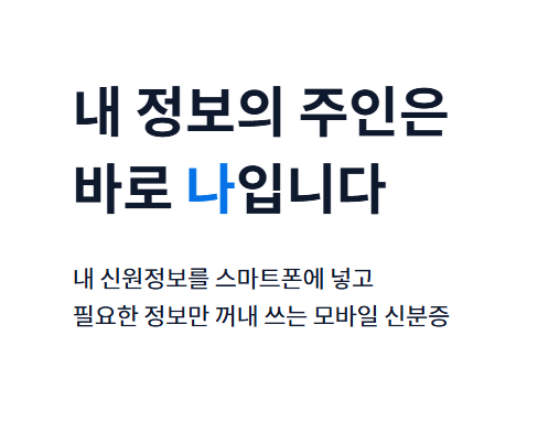 스마트폰 앱을 통해 주민등록증 정보를 보관하고, 공식 신분증으로 법적 효력을 인정받는 모바일 형태의 신분증이죠.