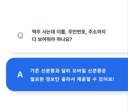 - 담배 주류 구매 시 QR코드 또는 NFC로 실시간 인증 가능 (CU GS25 세븐일레븐 등)