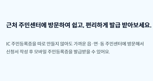 ➡ 모바일 주민등록증 발급방법은 보안성이 매우 강화되어 있어, 대리 신청은 불가하며 반드시 본인이 직접 방문해야 합니다.