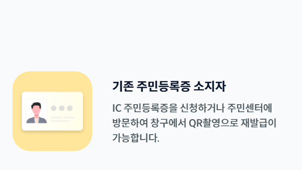 - 본인 인증 > 생체 인증 > QR코드 재등록 > 주민센터 방문 없이 자동 복원